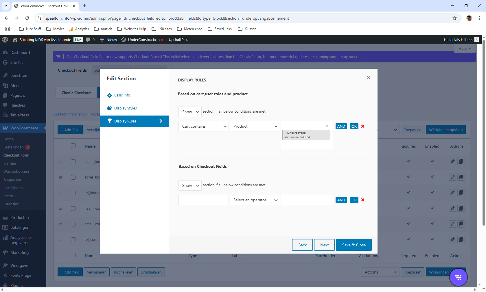 Deze velden zijn alleen zichtbaar bij een bepaald abonnement, dankzij de ‘display rule